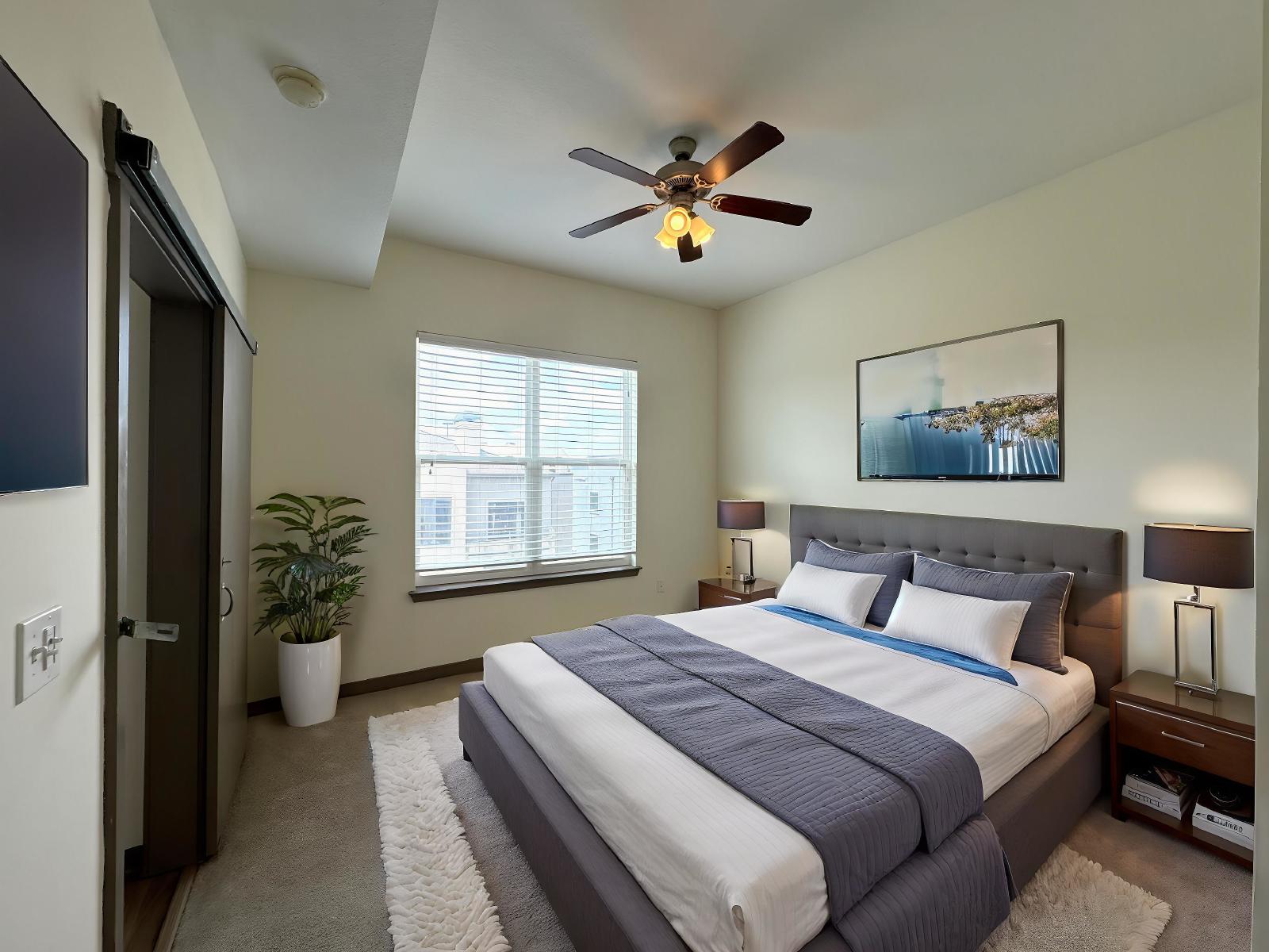 RARE PENTHOUSE LOFT unit at Element. Welcome to the ultimate live/work/play destination, just steps from Atlantic Station. This top floor CORNER unit offers incredible views and plenty of space. Tall ceilings with tons of natural light! The kitchen has black granite counters and stainless appliances. LVP flooring throughout kitchen, dining room, and living room. Cozy separate dining room with great city views. Freshly painted with new carpet in the guest bedroom, this unit has two full bathrooms plus a bonus loft area, perfect for the home office or exercise space. The spacious master bedroom features an ensuite bathroom with double vanity, soaking tub, separate shower and large walk-in closet. Washer and Dryer included as well. The building features secured parking with TWO deeded parking spaces, pool, fitness center and landscaped courtyard with BBQ area. Note: the building does have rental restrictions and there is a waitlist currently.